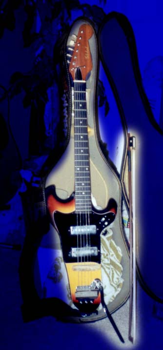 It's a fragile instrument. You wouldn't think so from the huge sounds it can make, but it's true. It's currently down to five strings, after the high string's cheap pot metal machine head snapped off sometime in the late '80s. The tone and volume controls were never much to begin with, but have become increasingly temperamental and have been nearly useless for many years. I try not to touch them.