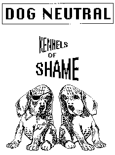 Dog Neutral logo designed by Hyam Sosnow, insidiously doctored from computer clip art. Logo tweaked for maximum 3D effect by GS. Dog Neutral live shot perverted by same.
