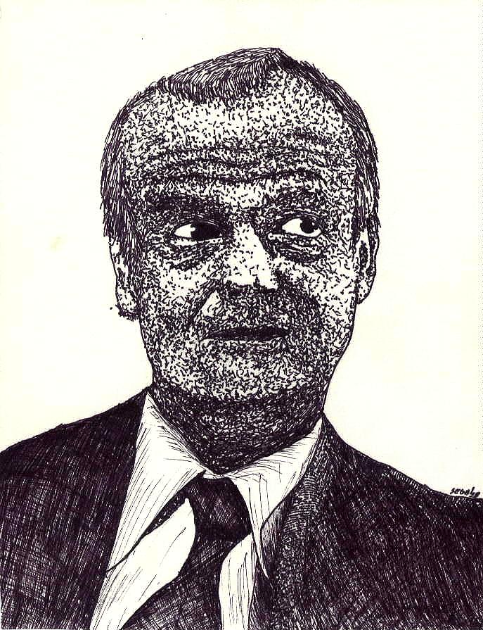 I truly do not remember much about this guy, who he was, or where the picture came from. I only remember how much fun I had making him look like he was made out of indoor-outdoor carpet or felt, like a muppet.