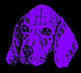 Dog Neutral logo designed by Hyam Sosnow, insidiously doctored from computer clip art. Logo tweaked for maximum 3D effect by GS. Dog Neutral live shot perverted by same.