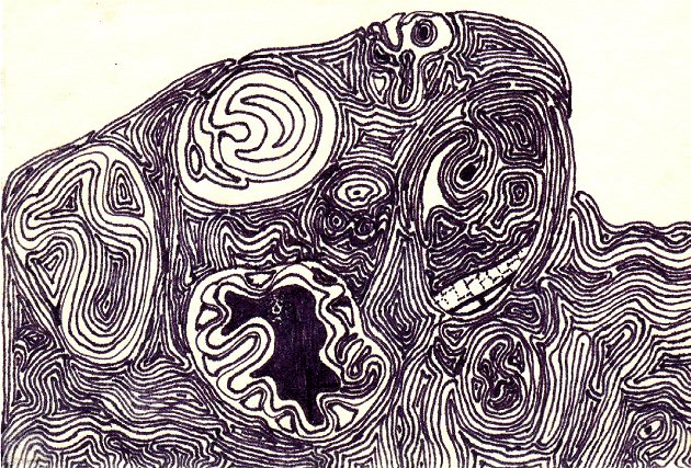 The date is approximate (it could have been as early as summer or as late as winter), but this is one of the earliest freehand drawings done for "the box". A crop of this now graces the rear cover of the Jugalbandi CD, "The Cram and Stuff Method".