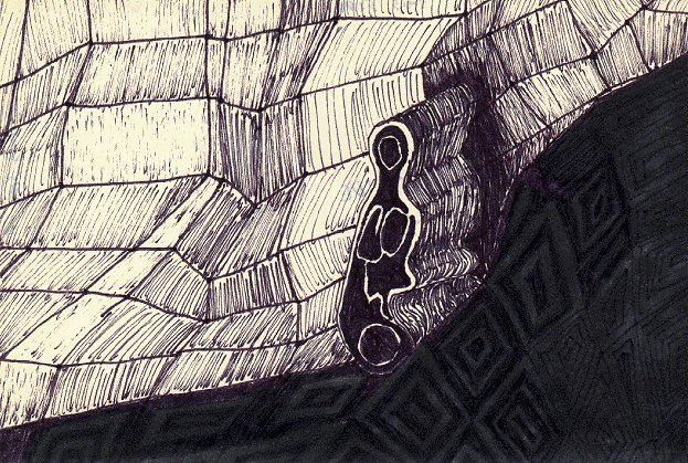This one is me in an architectural/abstract mood- nothing readily identifiable but things do have a sense of depth and chunkiness to them, like you're flying over or through some alien landscape. I'm also experimenting with two-tone black here- something I picked up in '78 and it just stuck with me as a technique. More on that elsewhere- see "War On Terrorism" for the most radical example.
