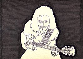 As you can see, the original artwork, greatly reduced here, had a lot of subtleties which did not transfer well using the process available to produce the original cassette cover. This links to a crop of the full sized (12"x12") work.
